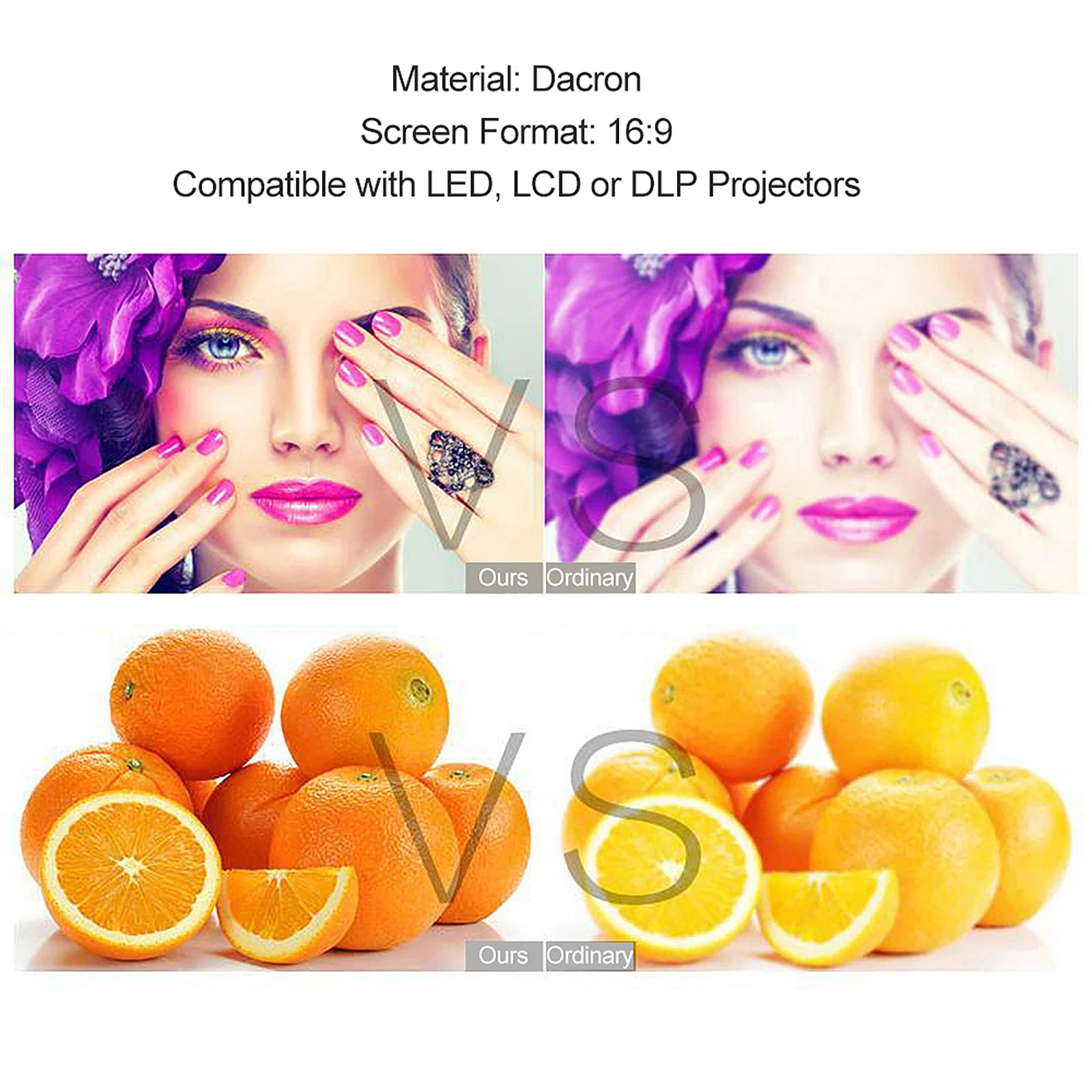 This projector screen is a great choice for home theater movies, classroom training, conference room presentations, public display and more, which is suitable for indoor and outdoor projections with your family and friends; it will bring you much fun and convenience.